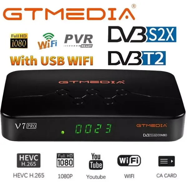 GTMedia V7 Pro 1080P Satellite Receiver H.265 DVB-S/S2/S2X/T/T2 PowerVu,Biss key